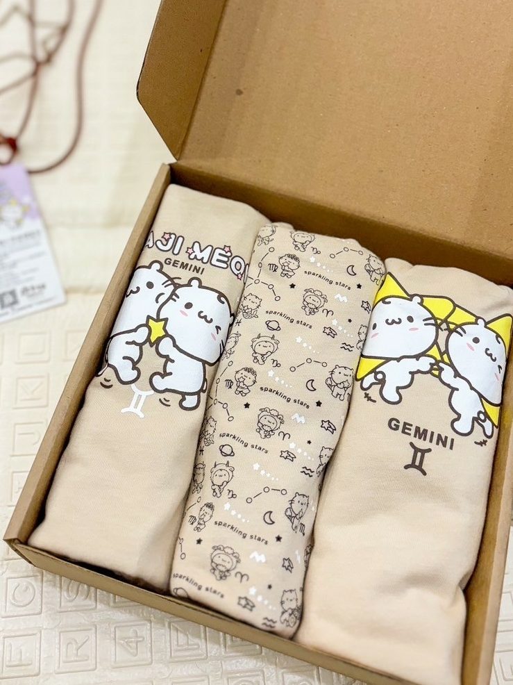 產品內容:包屁衣三件組 – 十二星座長袖(0-6個月)、雙子好朋友麻吉貓短袖(0-6個月)、雙子麻吉貓長袖(6-12個月)