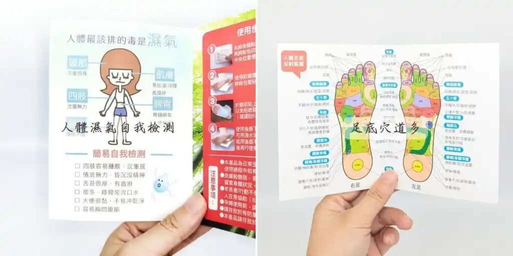 - 使用方式:可貼於手掌、腳掌、肩頸、背部…等身體,建議食用時間8H,將吸有水氣的貼布撕下即可。